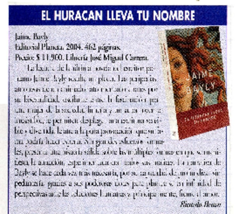 El huracán lleva tu nombre [artículo] Ricardo Bravo.