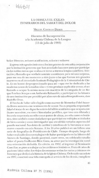 La Odisea y el exilio: itinerarios del saber y del dolor. [artículo] Miguel Castillo Didier.