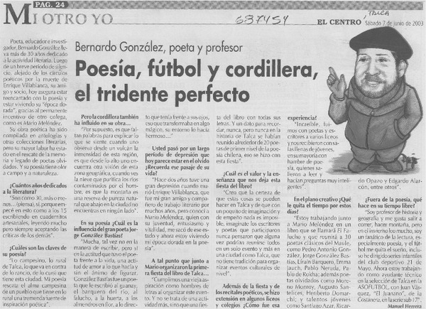 Poesía, fútbol y cordillera, el tridente perfecto [entrevista] [artículo] Manuel Herrera.
