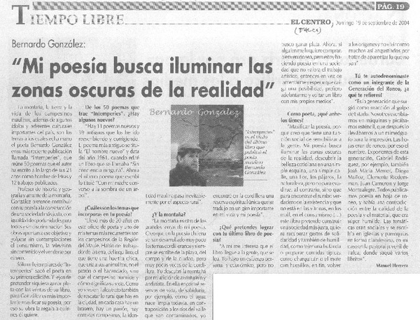 Bernando González: "Mi poesía busca iluminar las zonas oscuras de la realidad" entrevistas) [artículo]Manuel Herrera.
