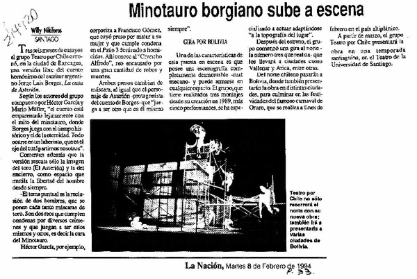 Minotauro borgiano sube a escena  [artículo] Willy Nikiforos.