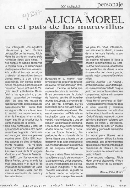 Alicia Morel en el país de las maravillas [artículo]Manuel Peña Muñoz.