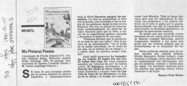 Mis primeras poesías [artículo] Manuel Peña Muñoz.