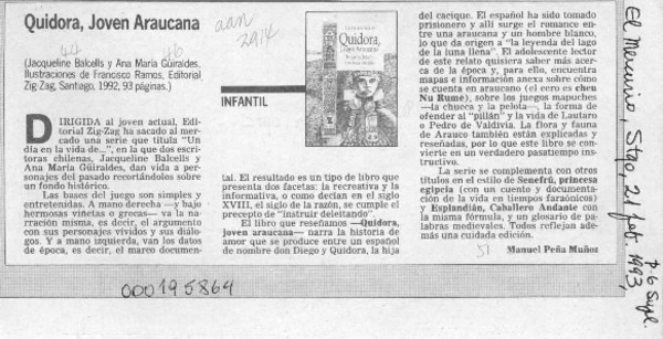Quidora, joven araucana [artículo] Manuel Peña Muñoz.