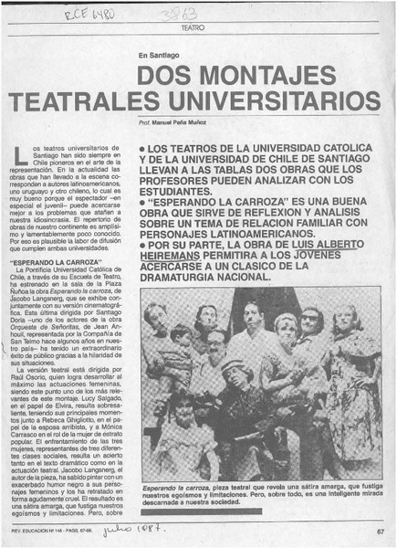 Dos montajes teatrales universitarios [artículo] Manuel Peña Muñoz.
