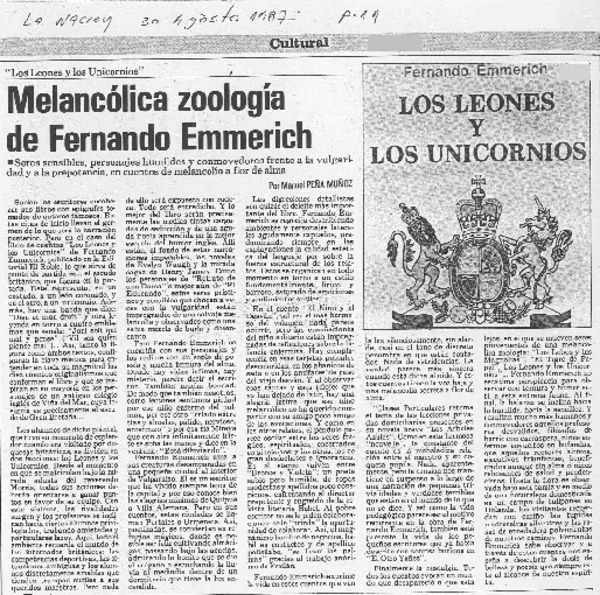 Melancólica zoología de Fernando Emmerich [artículo] Manuel Peña Muñoz.