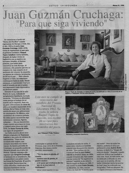 Juan Guzmán Cruchaga "Para que siga viviendo" [artículo] Manuel Peña Muñoz.
