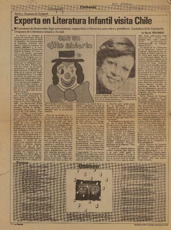 Experta en literatura infantil visita Chile [artículo] Manuel Peña Muñoz.