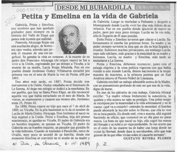 Petita y Emelina en la vida de Gabriela [artículo] Gustavo Rivera Flores.