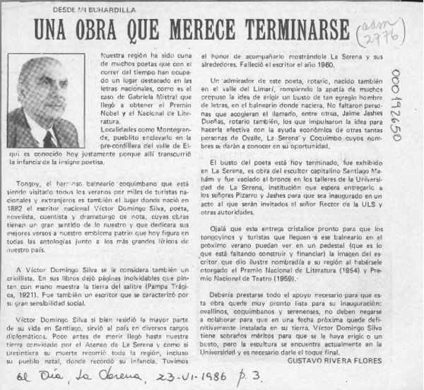 Una obra que merece terminarse [artículo] Gustavo Rivera Flores.