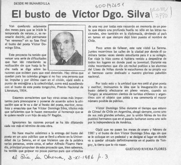 El busto de Víctor Dgo. Silva [artículo] Gustavo Rivera Flores.