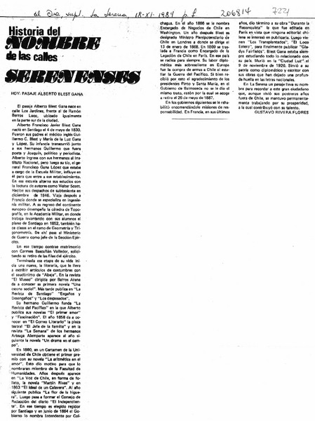 Pasaje Alberto Blest Gana [artículo] Gustavo Rivera Flores.