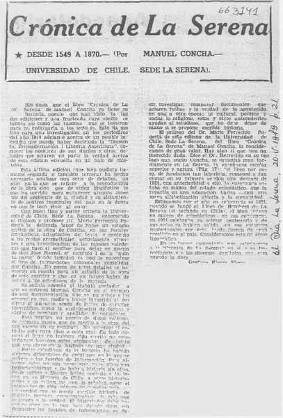 Crítica al libro de Manuel Concha "Crónica de La Serena" de 1872 [artículo] Gustavo Rivera Flores.