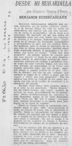 Benjamín Subercaseaux [artículo] Gustavo Rivera Flores.