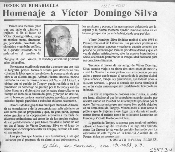 Homenaje a Víctor Domingo Silva [artículo] Gustavo Rivera Flores.