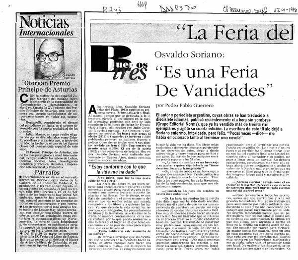 "La feria del libro -- es una feria de vanidades"  [artículo] Pedro Pablo Guerrero.