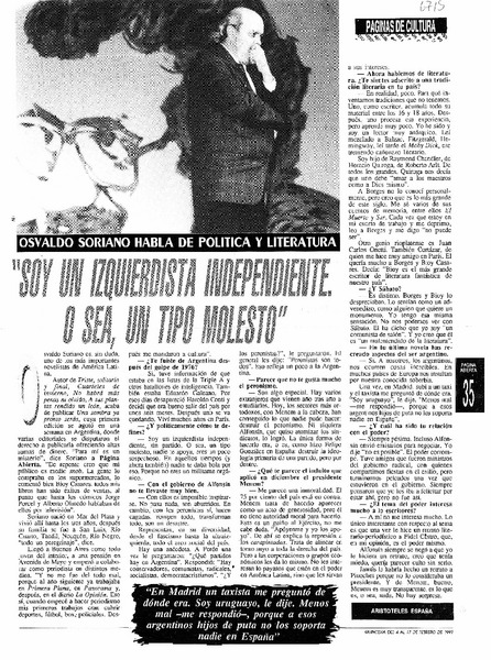 "Soy un izquierdista independiente, o sea, un tipo molesto"  [artículo] Aristóteles España.
