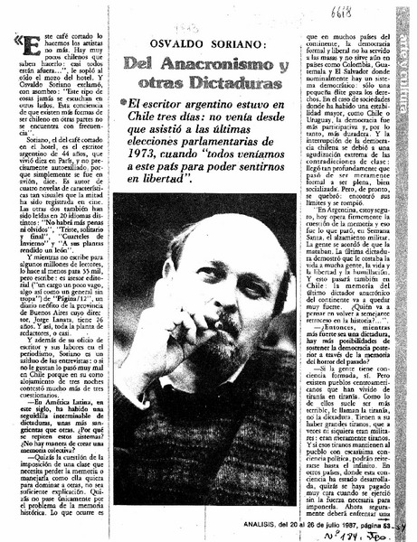 "Soy un frustrado" [artículo] Osvaldo Soriano.