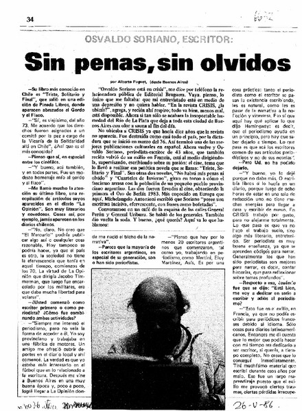 Soriano, "En una de ésas, si combino todo, en un par de meses me veo en Chile"  [artículo] Maura Brescia.