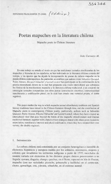 Poetas mapuches en la literatura chilena [artículo] Iván Carrasco M.