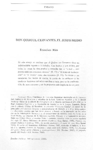 Don Quijote, Cervantes, el justo medio [artículo] Francisco Rico