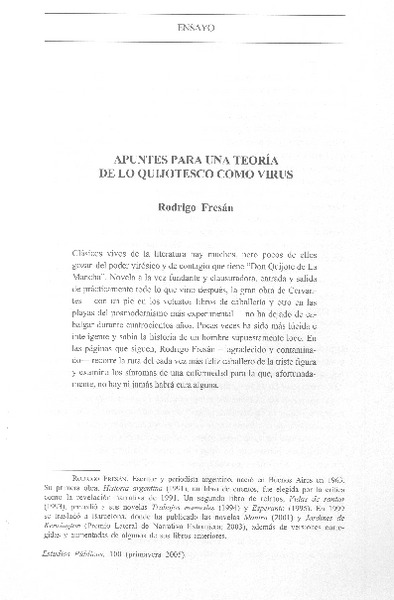 Apuntes para una teoría de lo quijotesco como virus [artículo] Rodrigo Fresán