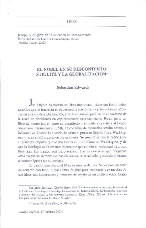 El Nobel en su descontento, Stiglitz y la globalización [artículo] Sebastián Edwards.