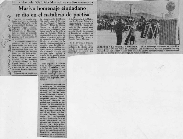 Un Homenaje al centenario del nacimiento de Gabriela Mistral [artículo].