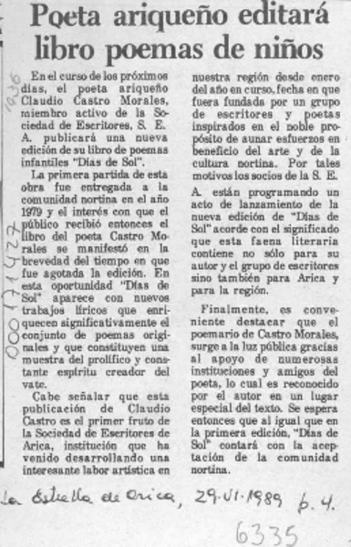 40 obras desea publicar un poeta internacional [artículo].