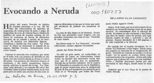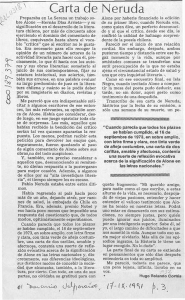 Carta de Neruda [artículo] Hugo Rolando Cortés.