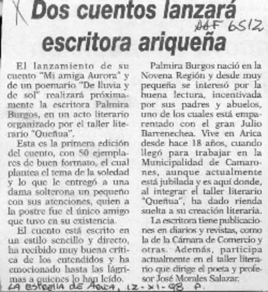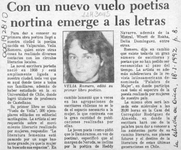 Con un nuevo vuelo poetisa nortina emerge a las letras [artículo].