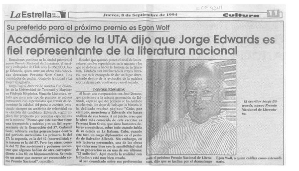 Académico de la UTA dijo que Jorge Edwards es fiel representante de la literatura nacional [artículo].