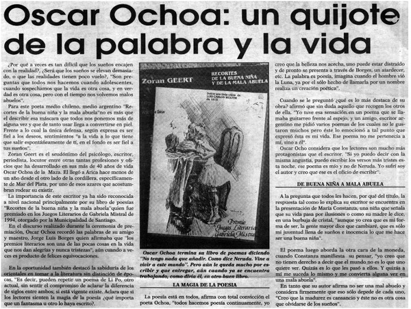Siguen reconocimientos por los 80 años de Oreste Plath [artículo].