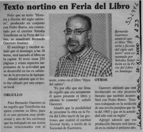 Guerrero J., Bernardo - Autores chilenos - Historia y ficción del siglo salitrero