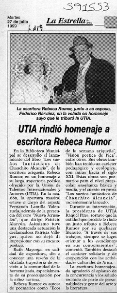 UTIA rindió homenaje a escritora Rebeca Rumor [artículo]