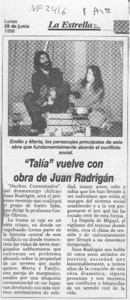 Rosa de dos aromas, la obra que prestigia al teatro local [artículo] Savallem.