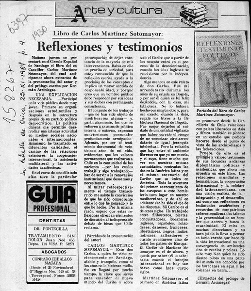 Carlos Martínez Sotomayor, "Reflexiones y testimonios políticos" [artículo] Germán Arciniegas.