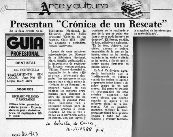 Buena crítica a libro de periodista Raquel Pino P. [artículo] Armando Lazo Valdebenito.
