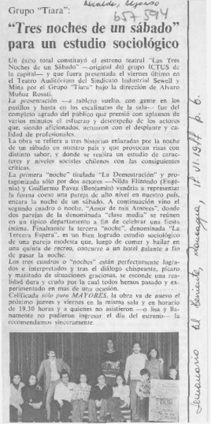 "Tres noches de un sabado" hoy en función pre estreno 20 horas [artículo]