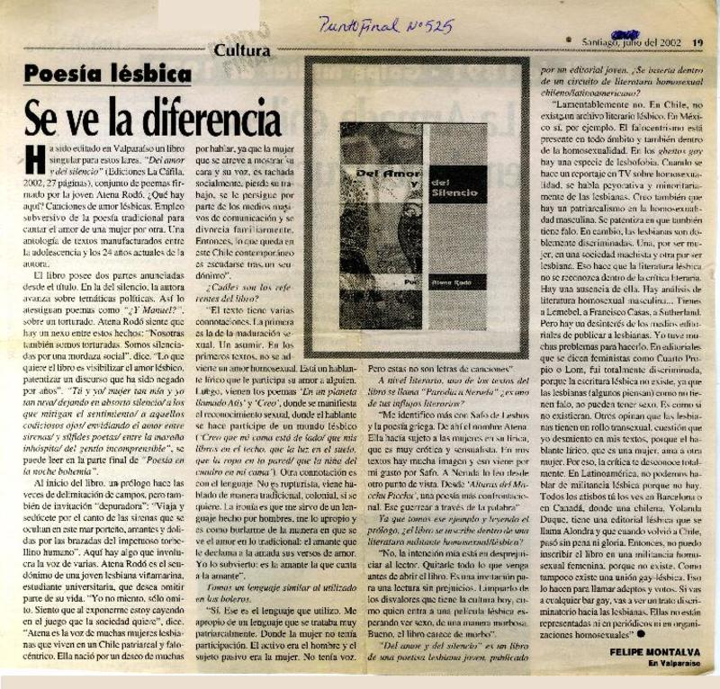 Mujer, primera persona" [artículo] Jorge Tapia Vidal.