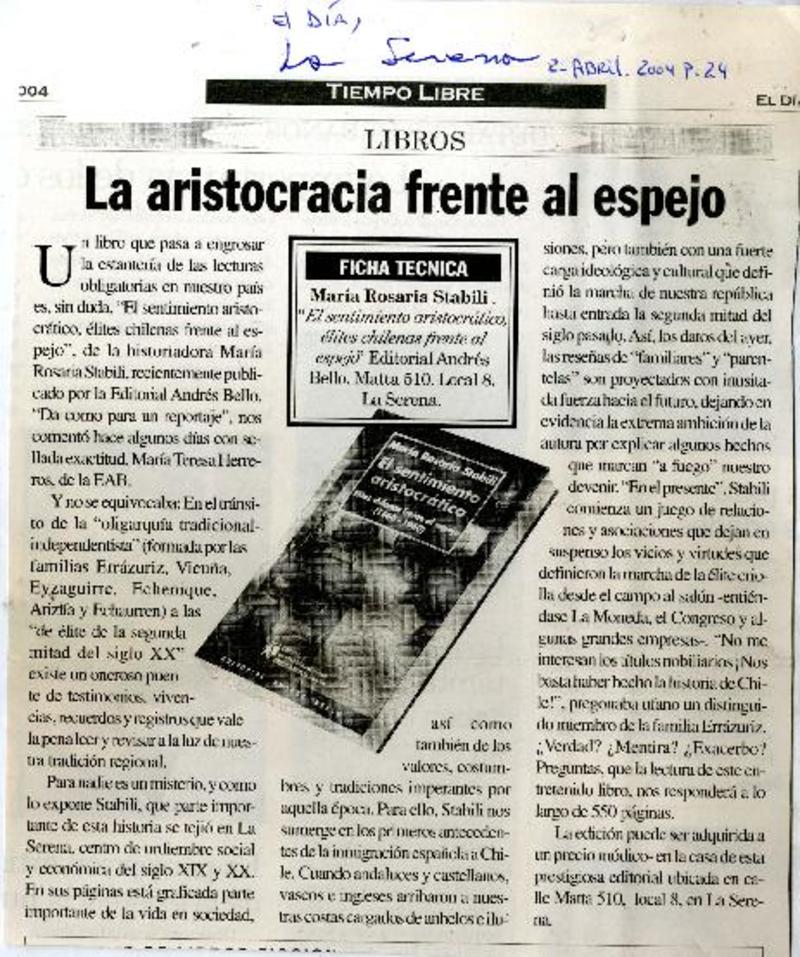 Autoras - Sentimiento aristocrático, elites chilenas frente al espejo (1860-1960) - Stabili, María Rosaria