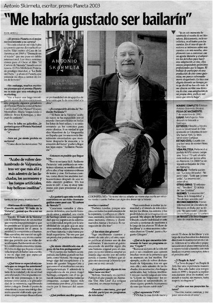Skármeta se llevó ayer el Premio Planeta [artículo] Beatriz Silva.