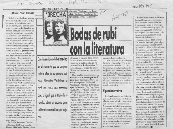 Bodas de rubí con la literatura [artículo] María Pilar Donoso.