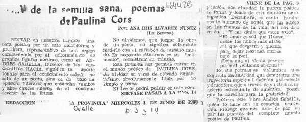 Y de la semilla sana, poemas de Paulina Cors [artículo] Ana Iris Alvarez Núñez.