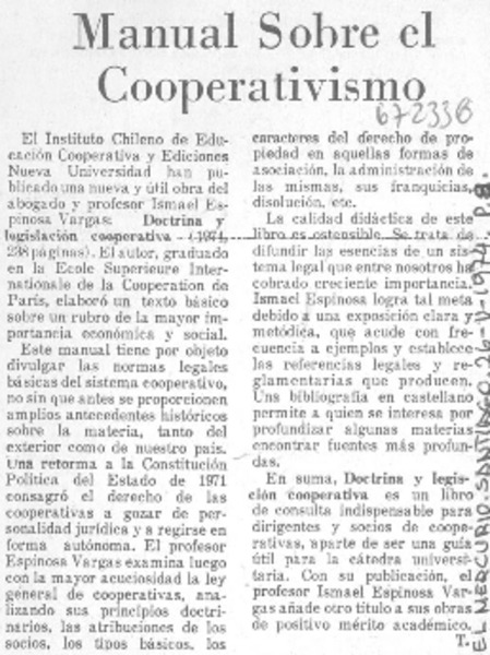 Manual sobre el cooperativismo [artículo] T.