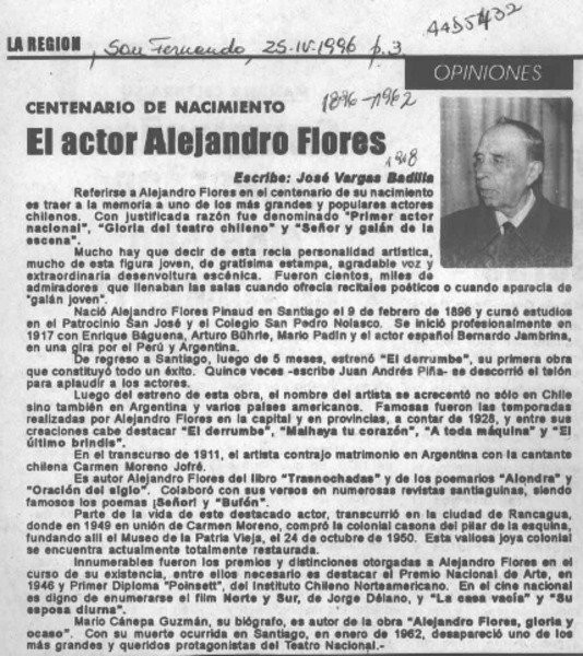 El actor Alejandro Flores [artículo] José Vargas Badilla.