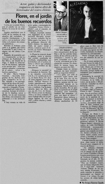 Alejandro Flores, galán del teatro chileno [artículo] Marino Muñoz Lagos.