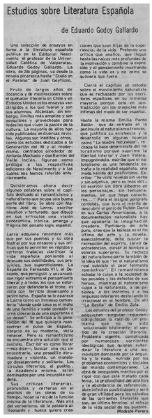 Estudios sobre literatura española [artículo] Modesto Parera.