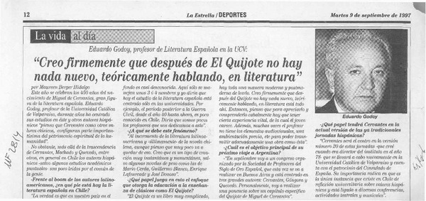 "Creo firmemente que después de El Quijote no hay nada nuevo, teoricamente hablando, en literatura"  [artículo] Maureen Berger Hidalgo.