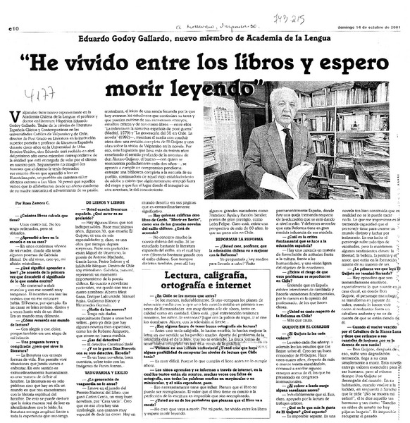 "He vivido entre los libros y espero morir leyendo" : [entrevistas]